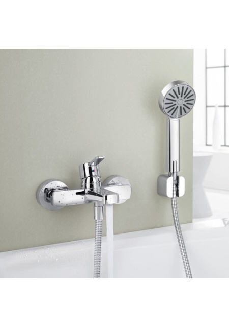 Setul de dus 6565005-00 A-Qa de la Kludi este alcatuit din para dus A-Qa 1 functie, furtun de dus SirenaFlex 1.25 m si suportul fix pentru perete.