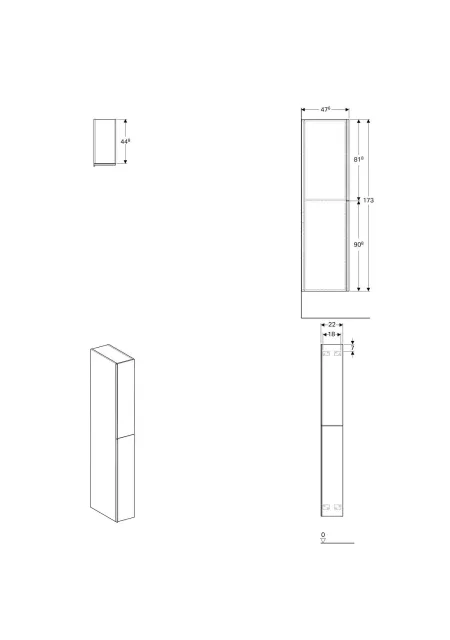 dimensiunile dulapului: 22 x 173 x 47,6 cm (ÎxLxA)