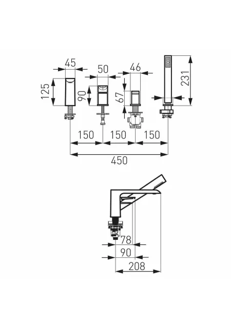 Specificatii tehnice Baterie cada - dus cu 4 piese Ferro Adore negru-crom: