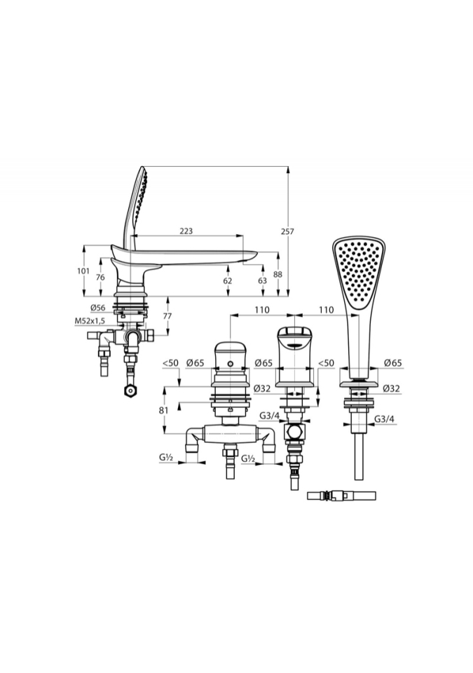 Baterie pentru cada si dus, cu 3 orificii, DN15, finisaj cromat: