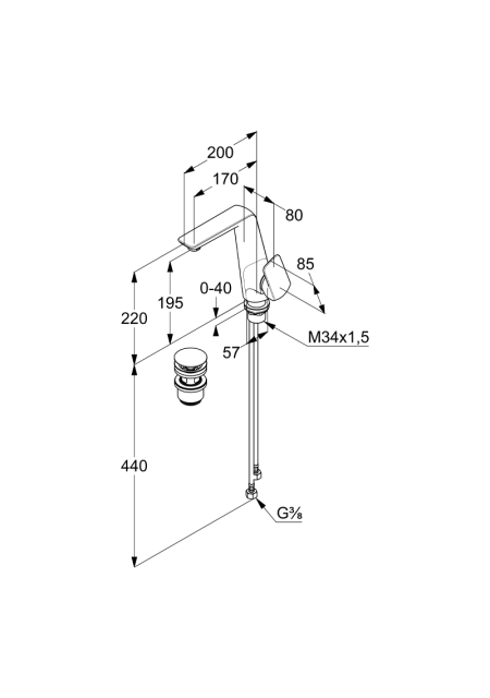AMEO, CROM, BATERIE LAVOAR CU MANER LATERAL, CU VENTIL, PERLATOR S-POINTER, 410250575