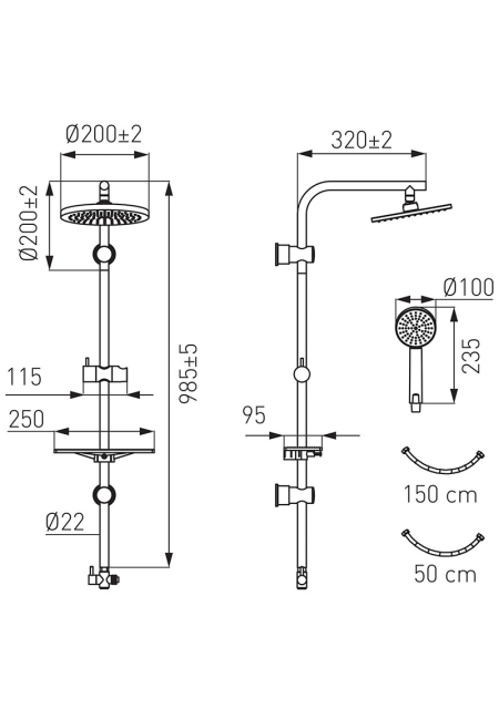 bara metalica de dus fixa 985 mm, cu distanta reglabila intre suporti - poate fi instalat in gauri deja existente in perete
