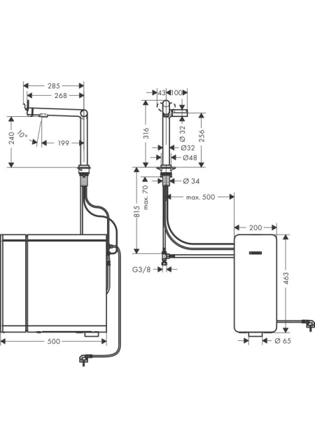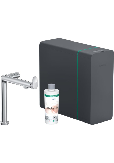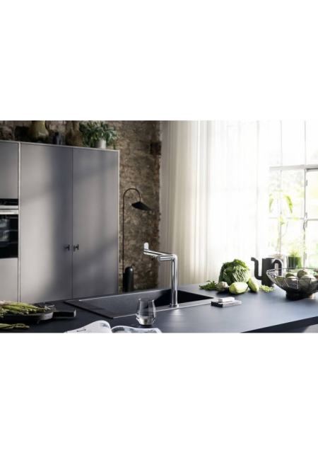 | Cu Aqittura M91 apa are un nou gust. Acest sistem exclusiv pentru bateria de bucatarie iti serveste apa potabila exact asa cum iti place cel mai mult: filtrata si optimizata, tratata optional cu minerale, carbogazificata si racita la cerere. Apa de baut rafinata vine direct de la baterie! Nu mai este necesara aprovizionarea cu sticle de apa: in acest fel, sistemul de filtrare ajuta la protejarea mediului inconjurator. Aqittura M91 pune capat compromisului cand vine vorba de apa potabile, si obtine un echilibru perfect intre gust si ingrediente cheie. Aqittura M91 FilterSystem filtreaza apa si are tehnologia inovativa de mineralizare a apei MINTEC®, ce elimina poluantii din apa si o imbogateste cu minerale importante. Baterie de bucatarie multi-functionala serveste apa imbunatatita pe loc, pe langa tehnologiile inovatoare, Aqittura M91 este si un element vizual elegant. Bateria vine in doua variante de design, cu arcada stilata rotunjita, sau cu design liniar. Poti alege intre trei variante de finisaj pentru fiecare caz: crom, negru mat sau inox optic. ComfortZone 240 Pipa rotativa ajustabila in 3 trepte: 60° sau 110° Tip de jet: laminar Debit maxim la 3 bar: 6,5 l/min Cartus ceramic Conexiuni G ⅜ Valva anti-retur integrata Bateria necesita o gaura in blat de Ø 35 mm Cai separate pentru apa filtrata si apa nefiltrata Apa filtrata poate fi accesta prin simpla apasare a unui buton de pe pipa bateriei Capacitate filtru de apa: 300 L Conexiune filtru de apa: G ⅜ (intrare si iesire) Debit maxim fitru de apa: 1,8 l/min Filtru de apa Harmony inclus Capacitate de racire apa: 7 l/h de apa racita sifiltrata Consum de energie: 240W (dozare apa), 180W (racire apa), 3W (standby) Notificari in aplicatia Hansgrohe Home, pentru schimbare filtru |