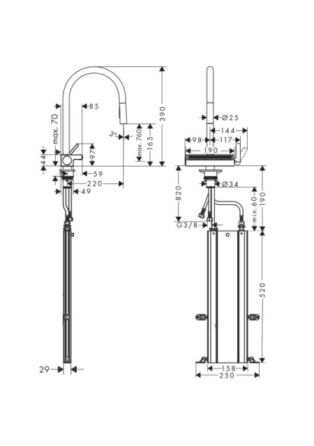 - diametrul necesar al orificiului pentru robinet Ø 35 mm