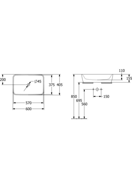 - concepută pentru robinete montate pe perete sau cu baza ridicată