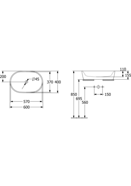 - dimensiunile bazinului: 57 x 37 cm