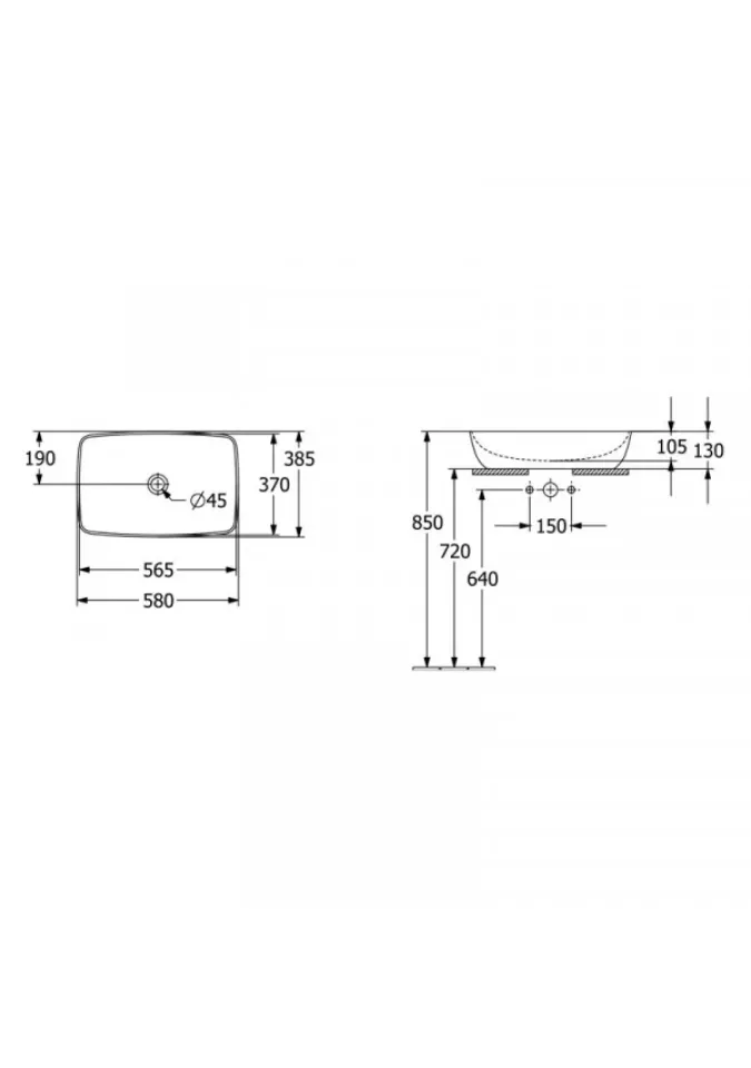lavoar pe blat, dreptunghiular, dimensiunea 58 x 38,5 cm, fara orificiu pentru baterie, fara preaplin