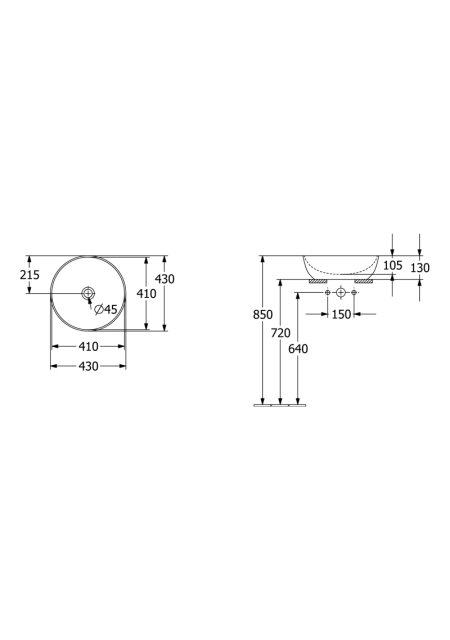 lavoar pe blat, rotund, fara orificiu pentru baterie, fara orificiu de preaplin