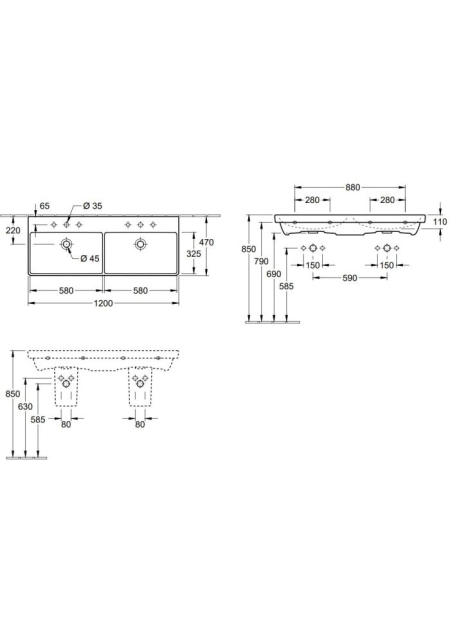 AVENTO, ALB, LAVOAR DUBLU 120X47X16CM CU 2 CUVE, 2 GAURI PENTRU BATERIE SI PREAPLIN, 4A23CK01