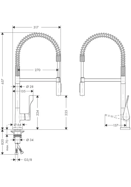AXOR CITTERIO, CROM, BATERIE BUCATARIE MONOCOMANDA, 230 SEMI-PRO, 2 JETURI, 39840000