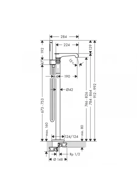 AXOR CITTERIO E, BRUSHED BRASS, BATERIE FREESTANDING TERMOSTATATA, 36416950