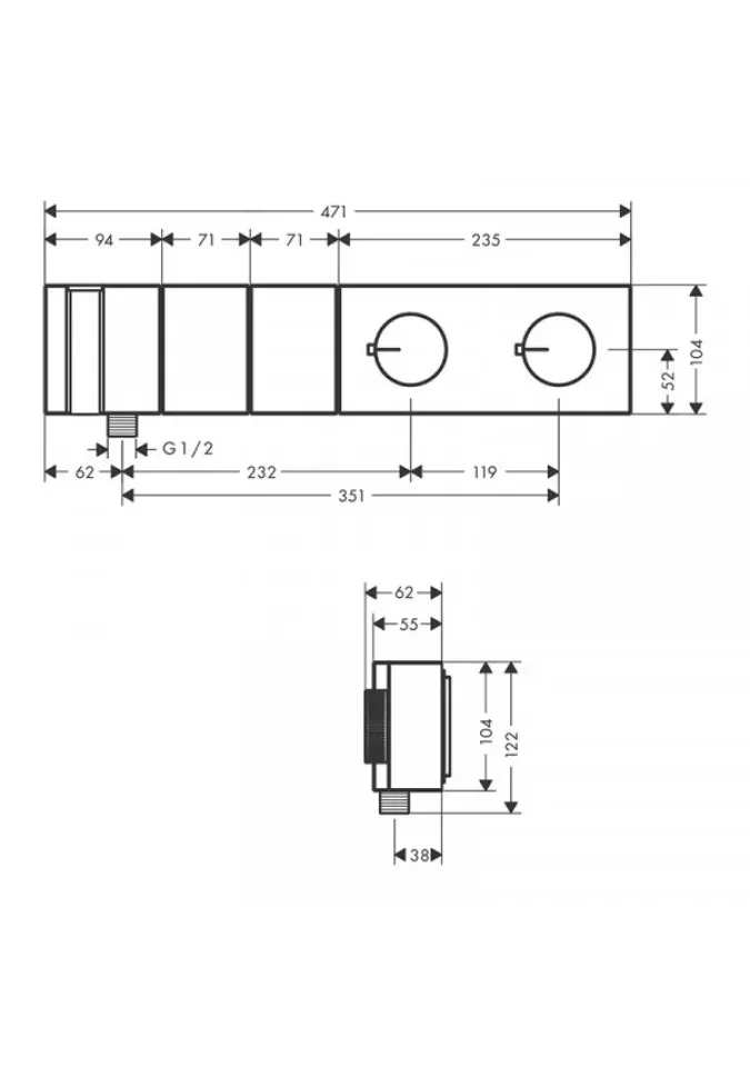 AXOR EDGE, POLISHED BLACK CHROME, PARTE VIZIBILA TERMOSTATATA SELECT 470/100 CU 2 FUNCTII, 46700330
