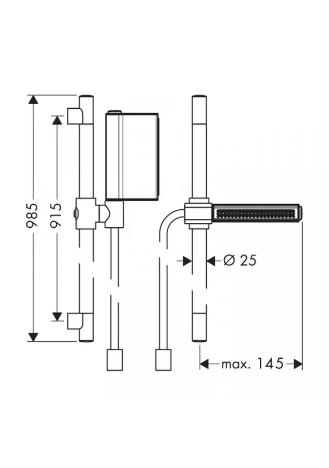 diametru bară de duș: 25 mm