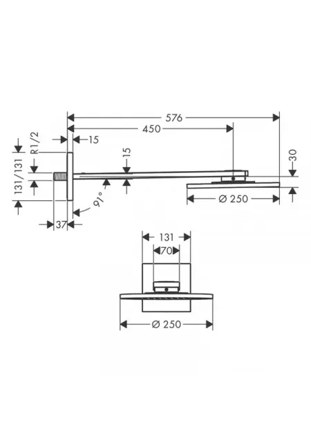 AXOR SHOWER SOLUTIONS, BRUSHED BLACK CHROME, CAP DE DUS 250 1 JET CU BRAT DE DUS DIN PERETE, 35284340