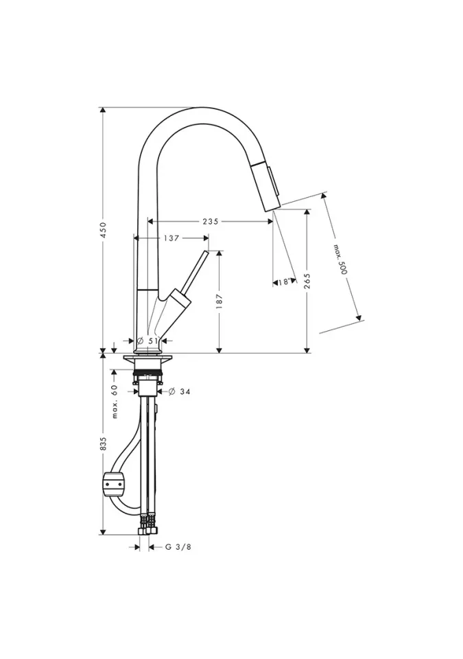 - raza de rotire a pipei e reglabila in 2 trepte la 110° sau 150°