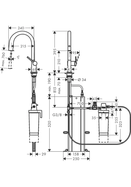 - filtrarea se selecteaza cu un buton integrat pe pipa bateriei de bucatarie