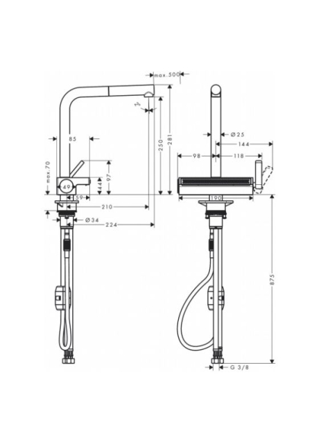- dus extractabil cu andocare magnetica MagFit si lungime furtun de 760 mm
