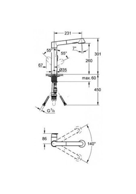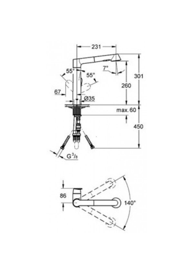 BATERIE BUCATARIE K7 SUPERSTEEL , PIPA ROTATIVA SI ZONA PIVOTANTA