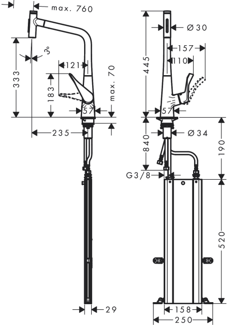 BATERIE BUCATARIE M7117-H320, CU PIPA EXTRACTIBILA