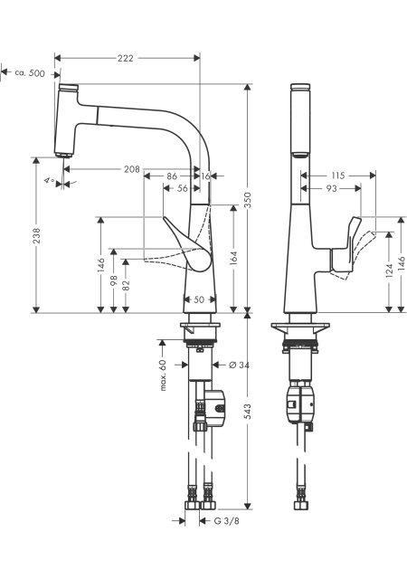 BATERIE BUCATARIE METRIS SELECT 240, CU PIPA EXTRACTIBILA, CROM