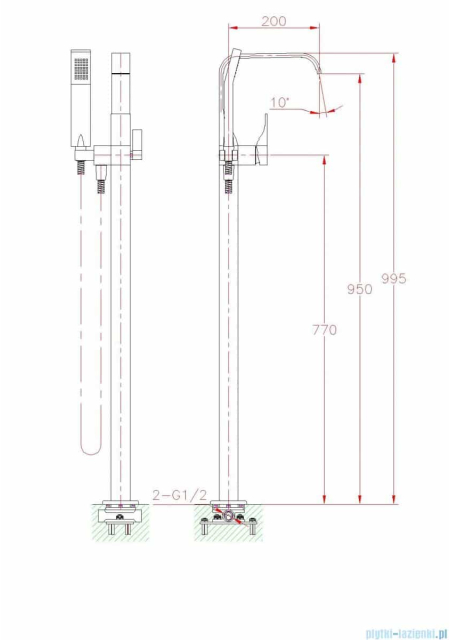 BATERIE CADA CU MONTAJ PE PARDOSEALA MODERN I CROM