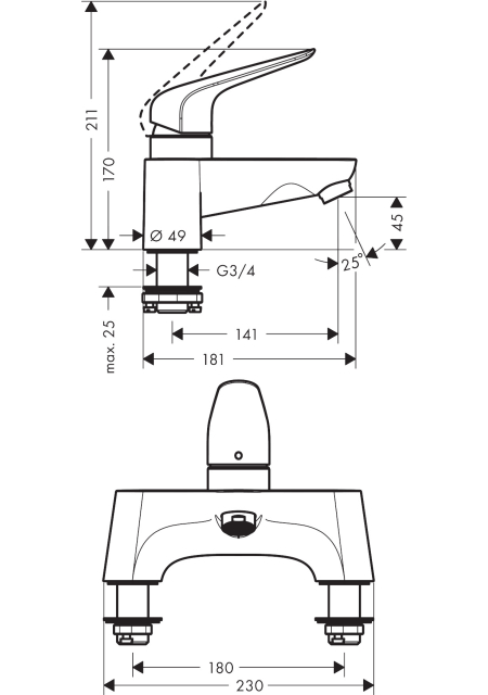 BATERIE CADA NOVUS CU MONTAJ PE CADA, FARA FURTUN SI PARA DE DUS