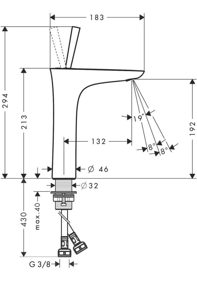 BATERIE LAVOAR INALTA 200 PURAVIDA CROM