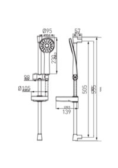 bara metalica de dus 505 mm, cu suporturi fixe (inaltime totala 555 mm)