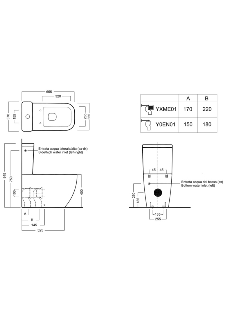 vas WC stativ rectificat cu evacuare universala; evacuarea este de fapt orizontala, dar corpul vasului WC este astfel realizat incat incape si un cot-racord, care transforma evacuarea orizontala in evacuare verticala