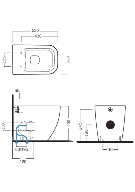 Tehnologie Rimless: vas WC conceput fara margini interioare, design ingenios ce nu permite acumularea murdariei si a depunerilor de calcar, solutie inovatoare pentru mentinerea igienei vasului de toaleta