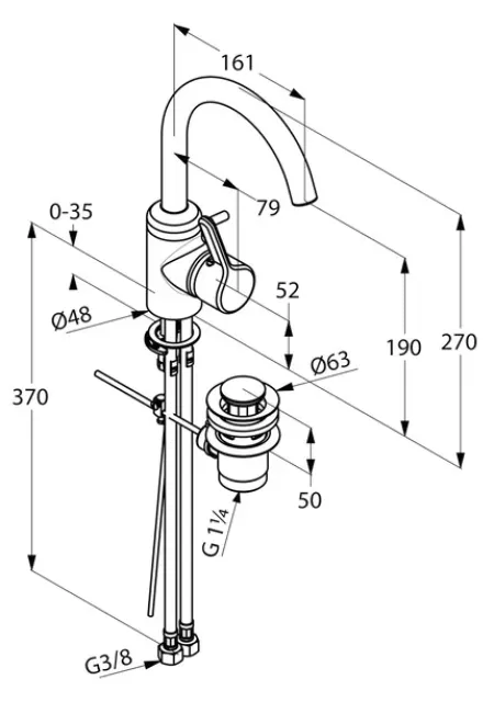 DN 10– mâner drept- montare cu o singură gaură- clasa de debit Z ≤ 9 l/min- aerator de cașcaval M 16,5 × 1– cartuș ceramic cu restricție pentru apă caldă- gura de scurgere pivotantă (360°)- set de deșeuri G 1 1/4– furtunuri flexibile de presiune G 3/8– sistem de instalare rapidă- economie de apă de până la 40%- cromat