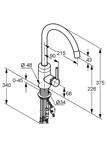 BOZZ, CROM, BATERIE BUCATARIE CU GURA DE UMPLERE MOBILA, EXTRACTIBILA, 428510576