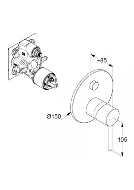 baterie monocomandă cadă-duş, încastrată