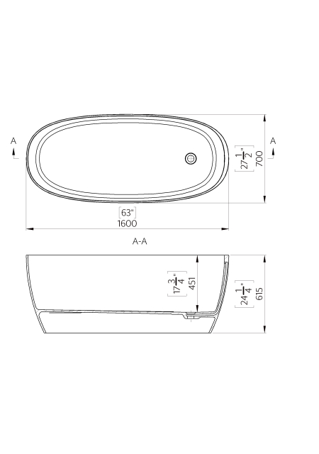 Cada freestanding Cast Marble Viena 160x70 cm din compozit, cu preaplin, alb