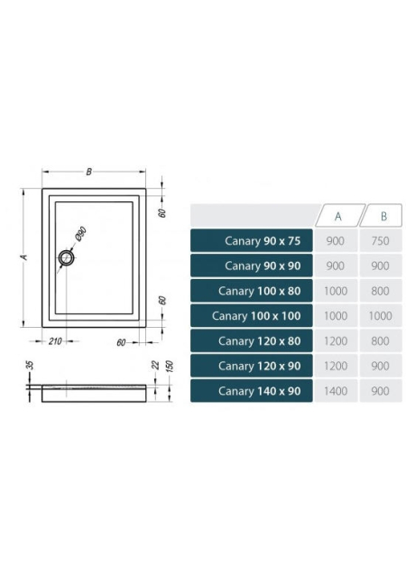 CANARY 100X100, ALBA, CADITA DUS PATRATA, SLIM, FI90, 100X100X3.5CM, MARMURA SINTETICA, 597220