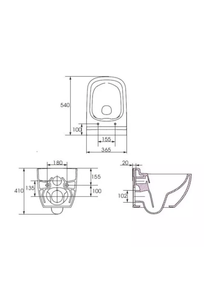 - vas suspendat fără flanșă interioară