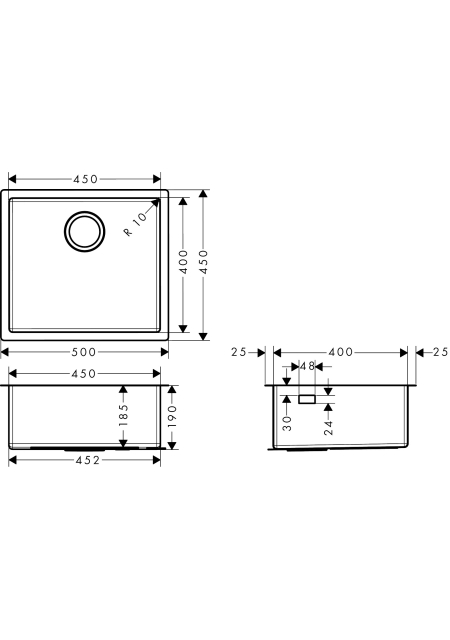 CHIUVETA BUCATARIE 1 CUVA S719-U450 INCASTRATA 448/398, MONTAJ SUB BLAT, INOX