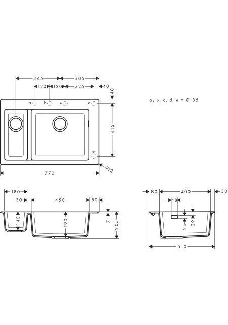 CHIUVETA BUCATARIE 2 CUVE S510-F635, 180/450 CULOARE STONE GREY