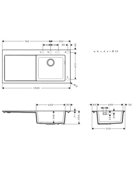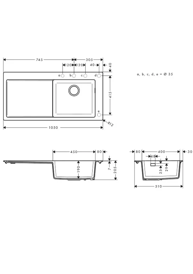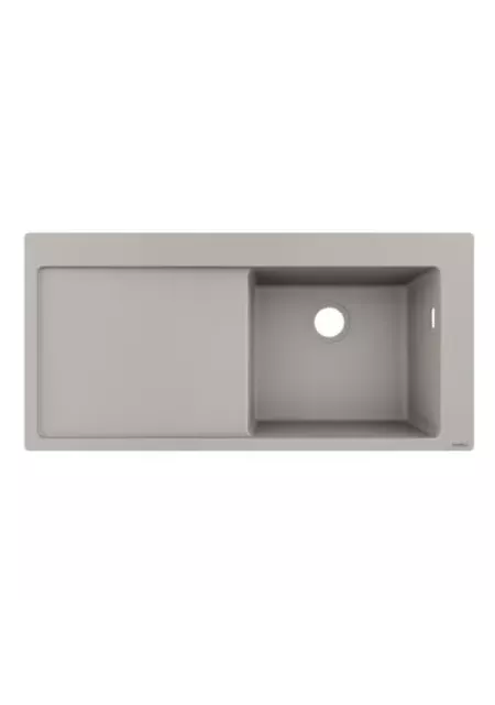 Chiuveta bucatarie fabricata din SilicaTec, cu dimensiunea decupaj 1030 x 490 mm, avand picuratorul in partea stanga si cuva in partea dreapta, cu drenaj, avand gaura pentru baterie predefinita (vezi schita tehnica), burghiu cu diamant inclus, pozitia preaplin pe partea dreapta a cuvei, dimensiunea blatului de 60 mm, cu tip de instalare topmount, cu adancime ciuvetei de 190 mm. Set de fixare inclus: cleme pentru instalare usoara; burghiu diamant; matrita decupaj; instructiuni de montaj. Setul de scurgere si bateria de bucatarie se comanda separat. Tehnologie Hansgrohe: SilicaTec: material inovator compus din 80% nisip de cuart, asigura suprafata neteda, termorezistenta (raze UV), rezistenta la zgarieturi si pete, datorita porozitatii reduse, este usor de curatat cu substante nepoluante si va arata tot timpul impecabil. Finisajul produsului este gri deschis (concrete grey). Garantie 60 luni. Produs fabricat de Hansgrohe.