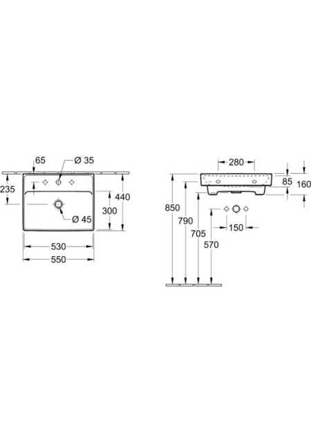 - pregătit pentru un mixer cu 3 găuri cu gaură centrală de tip knock-out