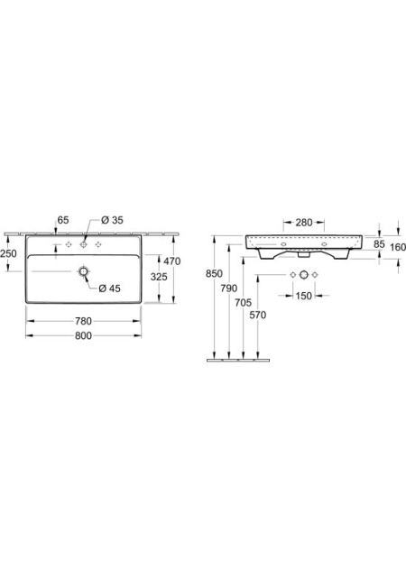 - pregătit pentru un mixer cu 3 găuri cu gaură centrală de tip knock-out