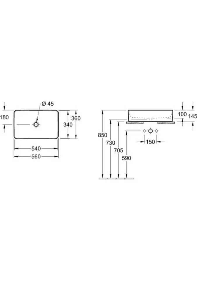 - instalare recomandată cu o distanță minimă între spatele lavoarului și perete de 5 cm