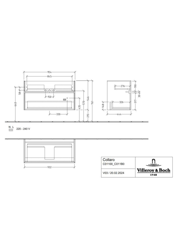 Prevazut cu doua sertare cu sistem de inchidere lenta si auto-inchidere