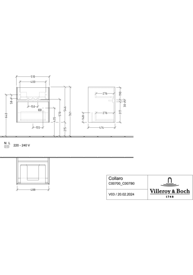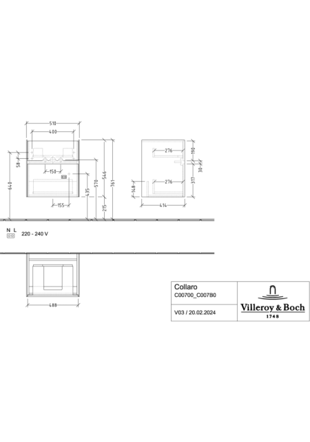COLLARO, GLOSSY WHITE, MOBILIER SUSPENDAT PENTRU LAVOAR 51X54.6X41.4CM, CU 2 SERTARE, MANER ALB MAT, C00700DH
