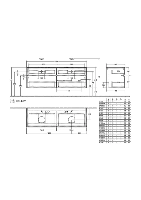 COLLARO, SOFT GREY, MOBILIER SUSPENDAT, PENTRU 2 LAVOARE PE BLAT, 4 SERTARE, 1600X548X500MM, C05200VK