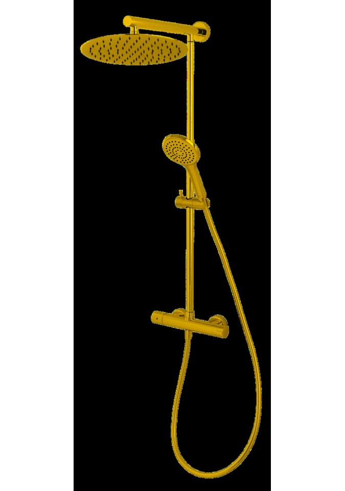 COLOANA DUS ANIMA, CU BATERIE TERMOSTATATA, BARA DUS REGLABILA, CAP DE DUS FIX ROTUND, PARA SI FURTUN DE DUS, AURIU LUCIOS