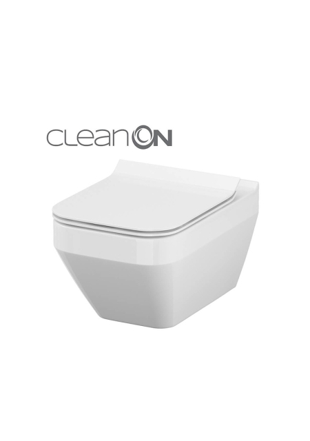 vas WC suspendat dreptunghiular cu Clean On = Rimless cu capac slim, Soft-Close si Easy Off