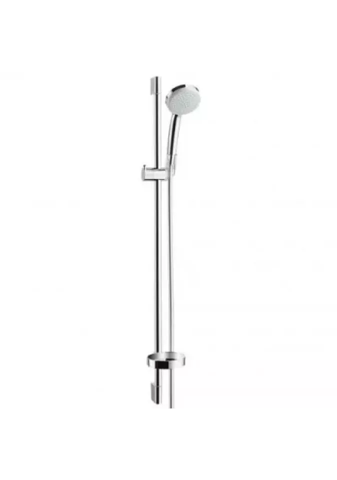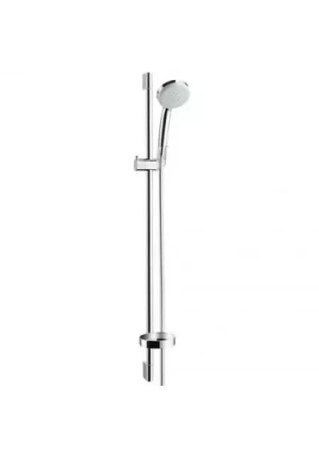 Setul de dus contine: para de dus mobila Croma 100 Vario (28535000), bara de dus Unica C 900 mm (27610000), furtun dus Isiflex metal de 1600 mm (28276000) si savoniera Casetta C (28678000). Dimensiune para dus: Ø100 mm cu 4 tipuri de jet: Rain, Shampoo spray, normal spray, Massage spray si debit apa maxim: 18 l/min (la 0.3 bari). Schimbarea tipului de jet are loc prin intermediul rotirii capului de dus, pozitia suportului de para este ajustabil iar suporturile de perete sunt cromate din plastic. Tehnologii: QuickClean, XXL Performance. Garantie 24 de luni. Produs fabricat de HANSGROHE.