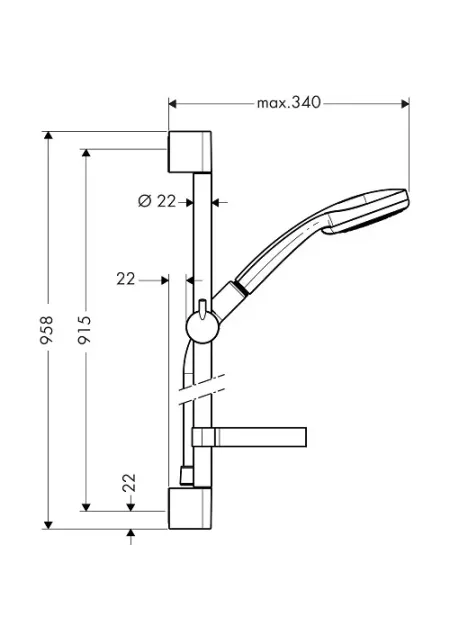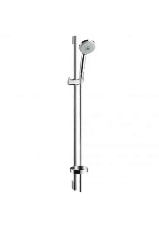 Setul de dus contine: para de dus mobila Croma 100 Multi (28536000), bara de dus Unica C 900 (27610000) mm, furtun dus Isiflex metal de 1600 mm (28276000) si savoniera Casetta C (28678000). Dimensiune para dus: Ø100 mm cu 3 tipuri de jet: Rain, MonoRain, Massage spray si debit apa maxim: 19 l/min (la 0.3 bari). Schimbarea tipului de jet are loc prin intermediul rotirii capului de dus, pozitia suportului de para este ajustabil iar suporturile de perete sunt cromate din plastic. Tehnologii: QuickClean, XXL Performance. Garantie 24 de luni. Produs fabricat de HANSGROHE.
