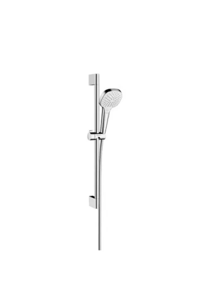 Setul de dus CROMA SELECT E VARIO ALB-CROM 0.65 m este format din: bara de dus cromata avand lungimea de 0,65 m; furtunul de dus Isiflex cu lungime de 1.60 m si para de dus Croma Select E Vario (26812400). Tipurile de pulverizare a parei de dus sunt: Rain, IntenseRain, TurboRain, schimbarea intre acestea se realizeaza prin butonul SELECT. Marimea parei de dus fiind de 110 mm. Bara de dus permite culisarea parei de dus sus, jos, stanga, dreapta. Debitul maxim este de 15 l / min (0,3 MPa). Garantie 60 luni. Produs fabricat de Hansgrohe.
